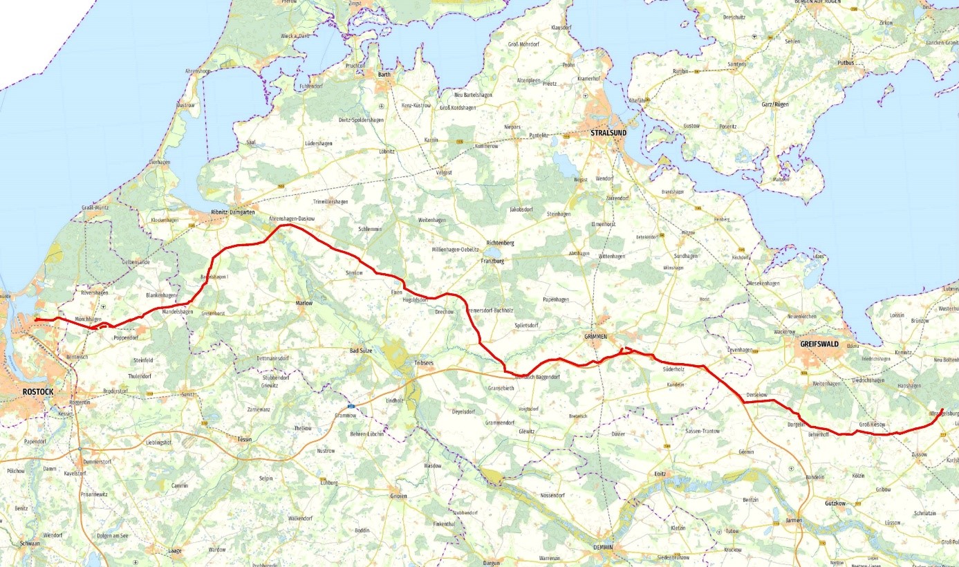 Die GASCADE Gastransport GmbH (GASCADE) plant eine neue Wasserstoff-Pipeline, die künftig den Bereich des Rostocker Hafens mit dem Raum Wrangelsburg verbinden soll. Die Pipeline HYROW ist Teil des deutschen Wasserstoff-Kernnetzes und soll bis 2028 fertiggestellt werden. Mecklenburg-Vorpommern nimmt eine zentrale Rolle im Wasserstoff-Hochlauf ein: Mit der Anbindung des Hafens in Rostock entsteht ein wichtiger Knotenpunkt für die künftige Versorgung und Verteilung von Wasserstoff in Nordostdeutschland und darüber hinaus. HYROW wird von der GASCADE als Teil des Infrastruktur-Programms „Flow – making hydrogen happen“ umgesetzt, mit dem der Aufbau einer leistungsfähigen Wasserstoff-Versorgung in Deutschland vorangetrieben wird.